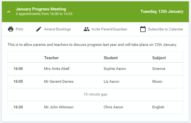 If there is more than one student linked to you and involved in the evening they will all be shown.