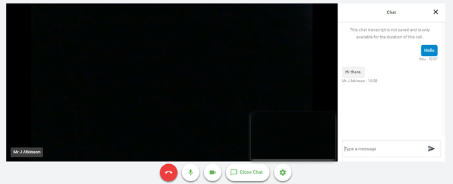 When a teacher joins a call you will see them in the main part of the screen - or hear them, if they have no camera (or have turned it off) - and can start your discussion with them.