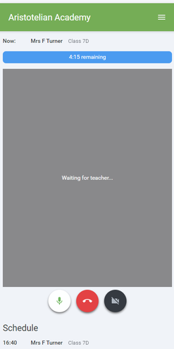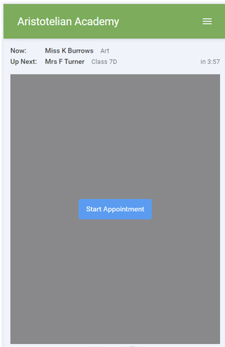 • At the top left the teacher name (and subject details) for the current and next appointment